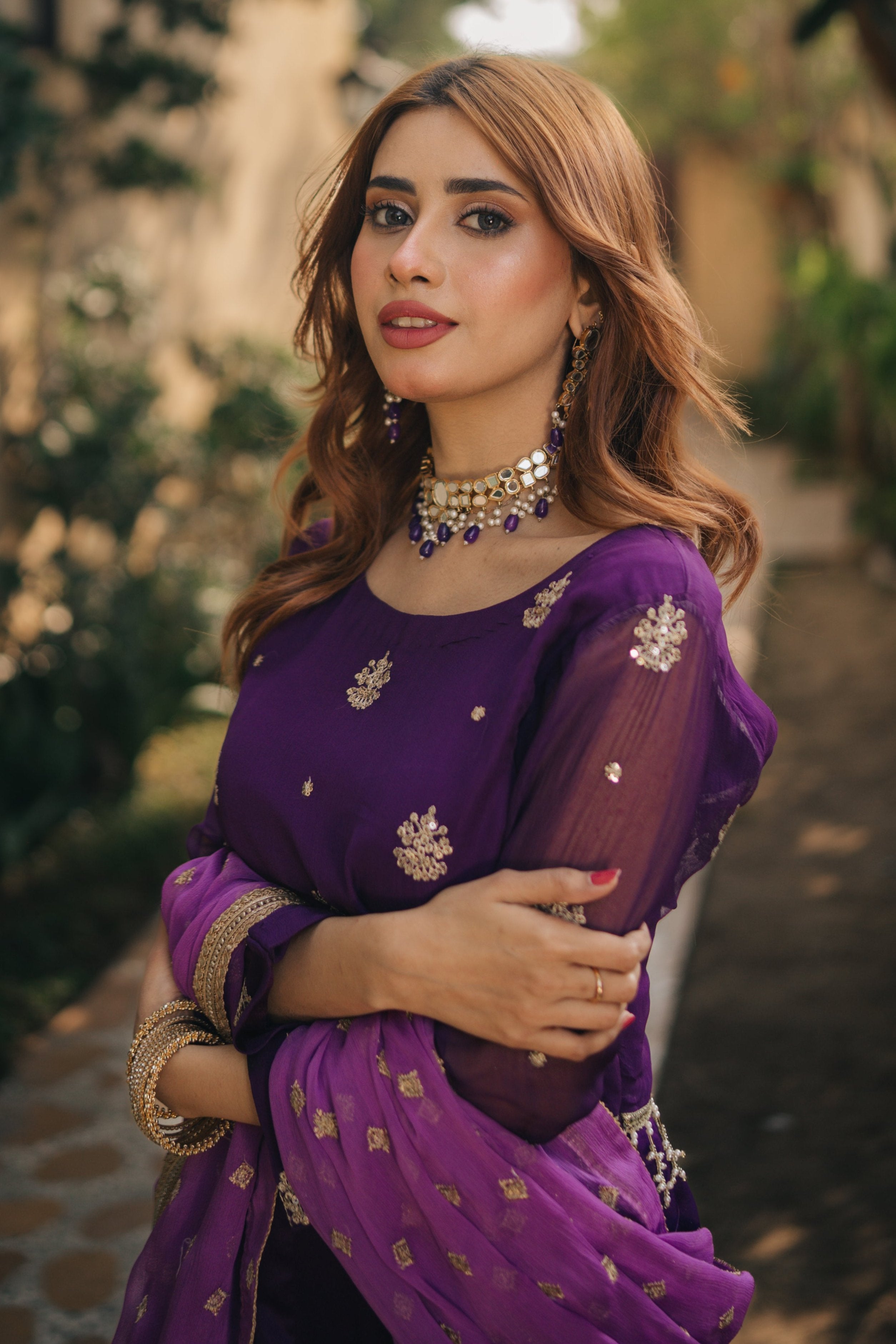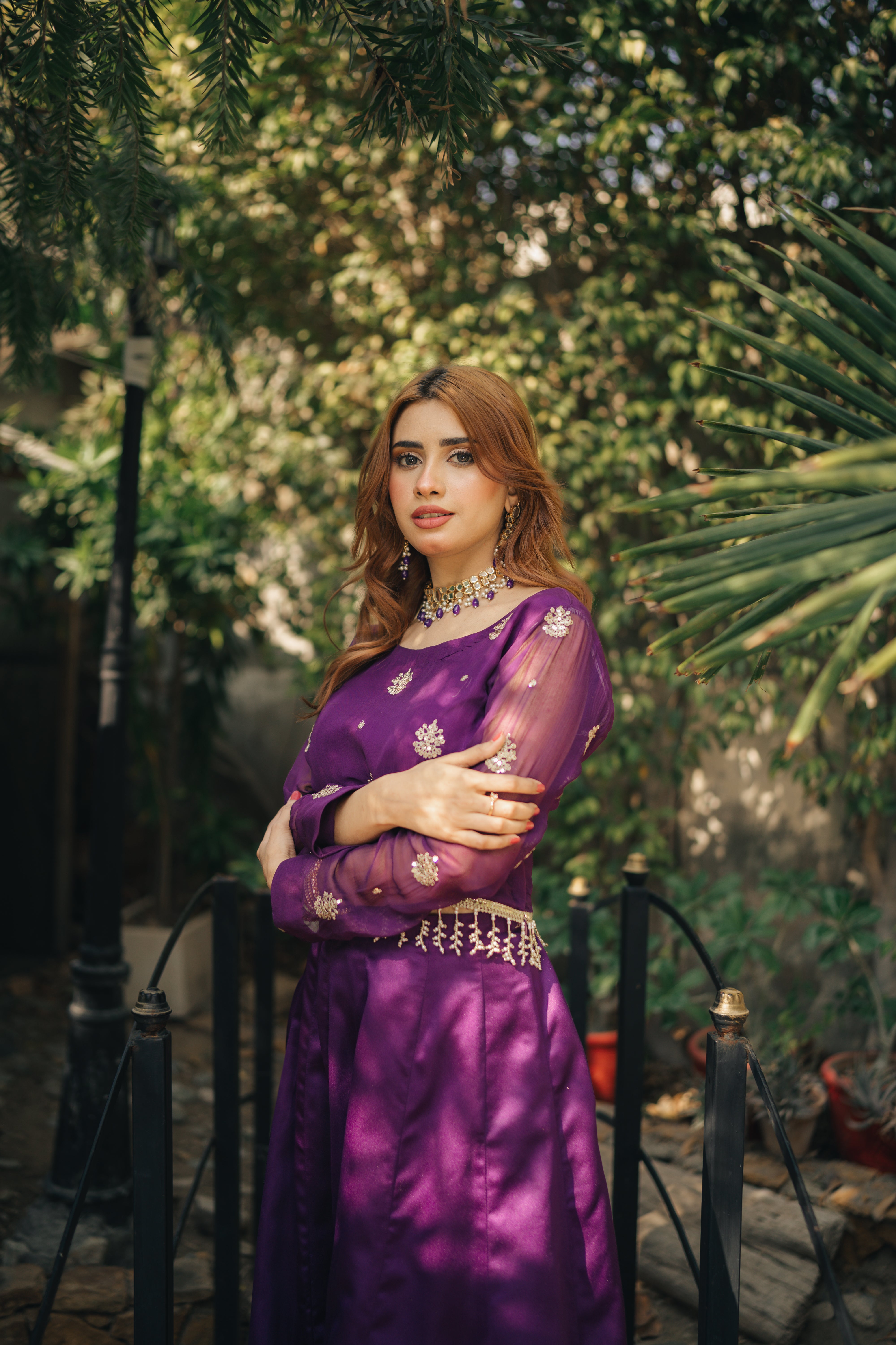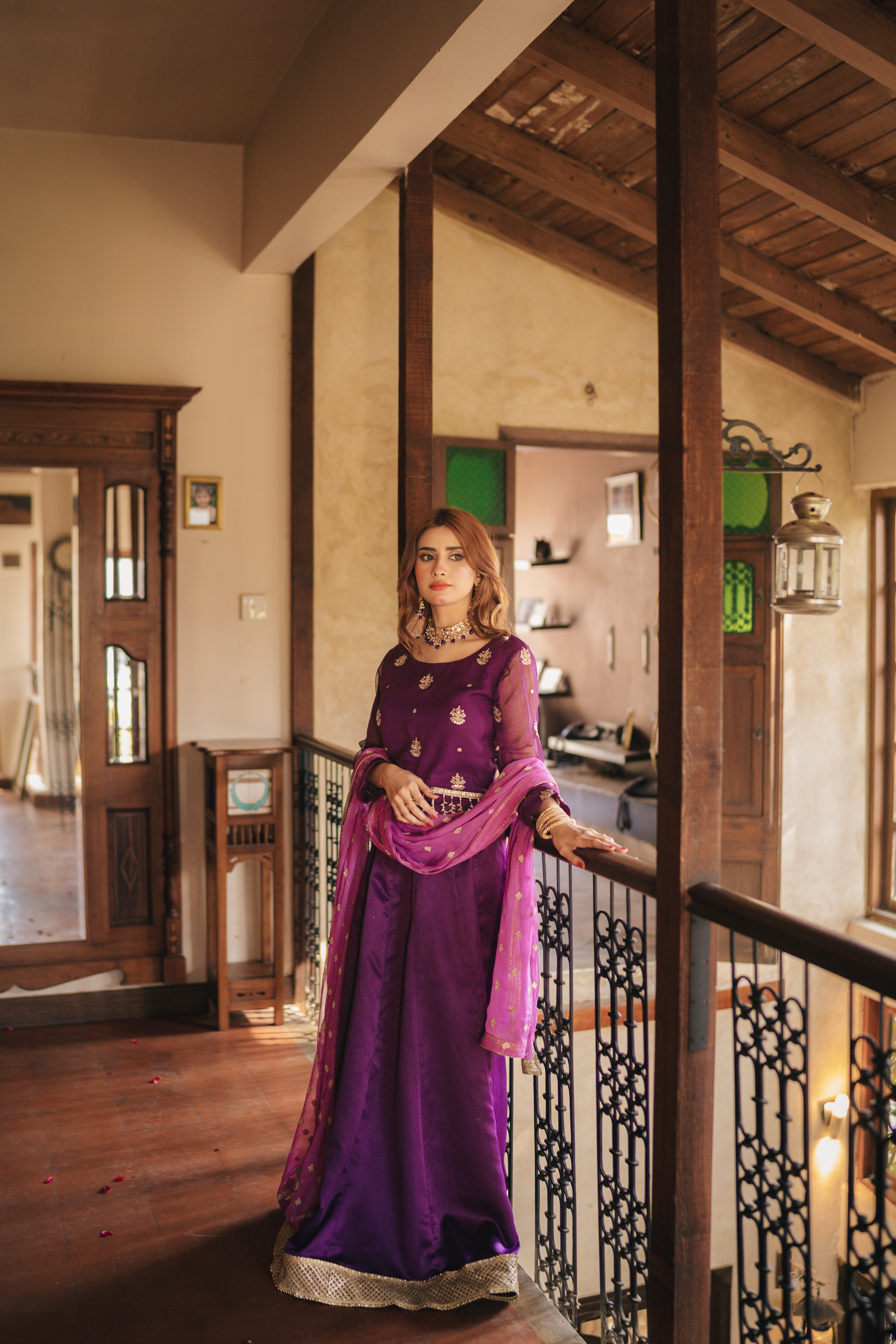 Introducing our exquisite Purple Chiffon Embroidered Choli paired with a shot silk lehenga featuring a stunning embellished border. The choli is adorned with delicate tassel lace, adding a touch of elegance to the ensemble. Complete your look with the included lilac chiffon embroidered dupatta, beautifully finished with a four-side lace. This ensemble seamlessly combines traditional craftsmanship with contemporary style, making it the perfect choice for any special occasion. Elevate your fashion statement with this captivating dress that celebrates grace and sophistication.